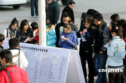 2月3日,山東濰坊藝考報名的首日,濰坊市區富華國際展覽中心擠滿了來自各地的考生。據悉,2009年山東濰坊省外藝考將于2月5日正式開考。中新社發 王勇 攝