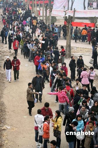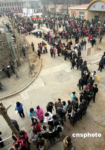 2月4日,成千上萬的考生從山東各地趕赴濟南報名參加省外院校藝術(shù)類專業(yè)考試。當日,濟南鐵道職業(yè)技術(shù)學(xué)院內(nèi)的藝考報名現(xiàn)場,迎來首個藝考高峰日,天津體育學(xué)院、西南大學(xué)等8個院校的報名點前人頭攢動,等待報名的考生排起了百米長的隊伍。不少考生和家長清晨6點就趕來排隊。中新社發(fā) 王鋒鋒 攝