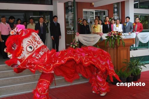 三月三十一日,位于泰國(guó)北部毗鄰清邁的南邦府嘎啦婭尼中學(xué)校園成為漢語(yǔ)和中國(guó)文化的舞臺(tái),當(dāng)?shù)氐暮⒆觽冇昧骼闹形模蜻h(yuǎn)近的客人,展示著豐富多彩的中國(guó)文化技能,如舞獅子、剪紙、毛筆書(shū)法、太極劍等。來(lái)自北部各府以及曼谷的多所學(xué)校通力合作,將嘎啦婭尼的孔子課堂成立活動(dòng)搞得有聲有色。中新社發(fā) 顧時(shí)宏 攝