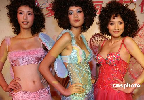 | 7月12日晚,中國著名模特經紀公司東方賓利與著名內衣公司愛慕聯手在北京舉行“尋找愛美麗天使--2007第四屆中國內衣模特大賽”啟動儀式。是次大賽將在中國12個城市分賽區進行選拔活動,最后選出36名優勝者參加在南寧舉行的總決賽,大賽打破以往職業模特選拔貫有的傳統條件,參賽選手身高可降低至1.65米以下,三圍玲瓏有致、肌膚體態健康的美麗女孩將成為中國新一代內衣超模,獲勝者將帶上“愛美麗天使”桂冠,并為愛慕旗下的品牌做形象代言人。中新社發 錢興強 攝