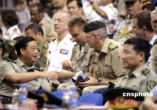 圖為駐香港部隊司令員張仕波少將與武官團交流。中新社發 張勤 攝