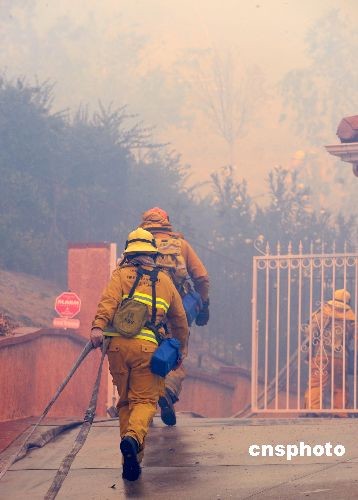 消防員進入洛杉磯近郊一家民宅后院進行滅火。中新社發 張煒 攝