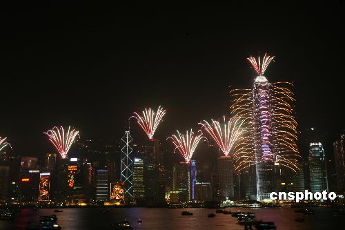 香港:31日晚,香港維多利亞灣畔的國際金融中心二期等十座建筑舉行“除夕倒數詠香江”煙火倒數活動,四十多萬香港市民會聚維港兩岸,在燦爛光影中迎接二零零九年的到來。據悉,此次煙花表演時長五分多鐘,花費約三百萬港元。