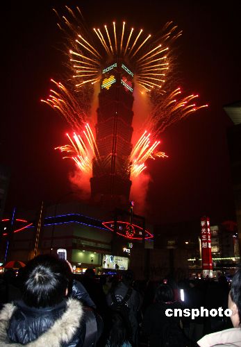 臺(tái)北:一月一日凌晨,臺(tái)北市在一0一大樓施放煙火,迎接2009年元旦的到來(lái),吸引了大批市民觀看。 中新社發(fā) 陳立宇 攝