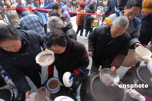 1月3日是臘八,杭州的一些老字號(hào)藥館、寺廟及社區(qū)免費(fèi)向市民派送臘八粥。當(dāng)天“杭城盡飄臘八粥香”。今年老字號(hào)藥館張同泰特別采用新鮮鐵皮石斛汁熬制臘八粥,還放上了珍貴的鐵皮石斛花。除了祈求來年日子過得紅紅火火、增福增壽外,還希望大家擁有健康的身體和愉快的心情。中新社發(fā) 引煒 攝