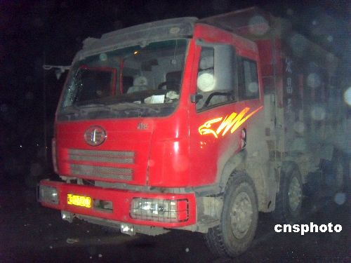 圖為被撞毀的大貨車。中新社發 翟羽佳 攝