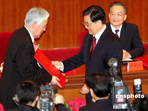 胡錦濤為王忠誠頒發國家最高科學技術獎。