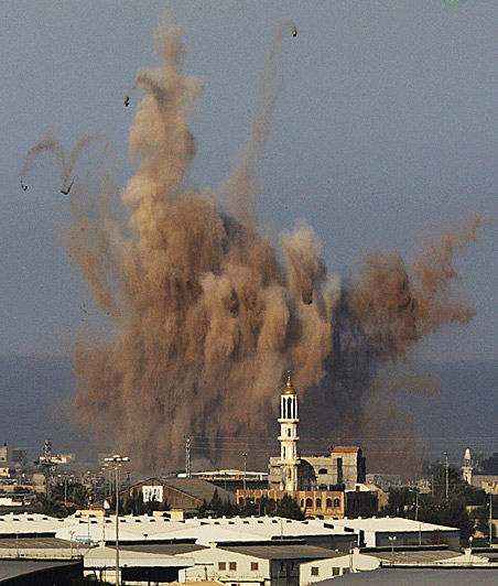 1月14日,以軍把打擊哈馬斯的攻勢進一步深入到加沙地帶的主要城鎮,爆炸聲和機關槍猛烈開火的聲音響徹整個加沙城。以軍飛機在夜間共發動60多次空襲,攻擊重點集中在靠近埃及邊境被用來偷運武器的地道。在加沙城郊街頭,以軍部隊與哈馬斯民兵展開激戰。巴勒斯坦急救部門在加沙地帶的負責人哈撒內14日宣布,沖突已經造成1001名巴勒斯坦人死亡,另有4580人受傷,其中很多死者是平民。