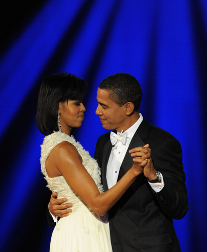 當地時間1月20日,奧巴馬在美國首都華盛頓的國會大廈前宣誓就職,成為美國第四十四任總統。當日奧巴馬夫婦在華盛頓特區舉辦的一場舞會上露面,兩人還在舞會上深情款款的共舞一曲。
