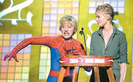 艾倫·迪吉尼瑞斯曾在MTV電影頒獎(jiǎng)禮上身穿蜘蛛俠服裝擔(dān)任頒獎(jiǎng)嘉賓。