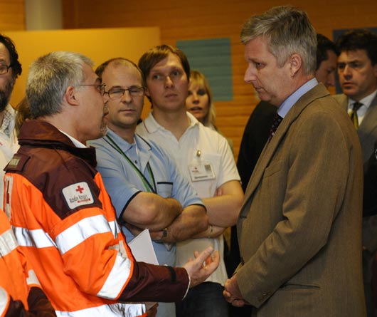比利時王儲菲利浦王子前往危機應對中心看望救援人員。