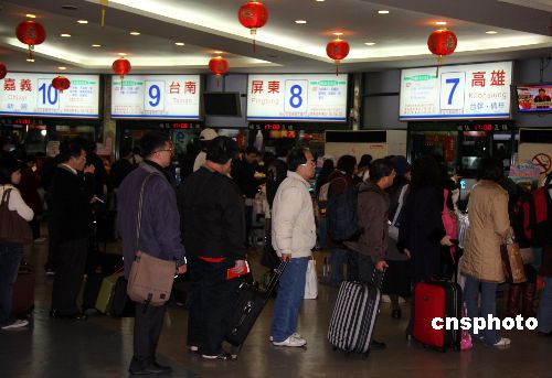 圖:臺(tái)北長(zhǎng)途汽車客運(yùn)站出現(xiàn)排隊(duì)等車回鄉(xiāng)人龍