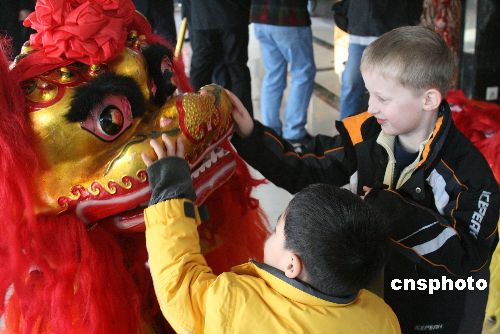 1月26日(中國農(nóng)歷正月初一),天津有關(guān)部門舉辦聯(lián)誼活動(dòng),邀請?jiān)诮蛲鈬讶斯捕尚麓杭压?jié),豐富多彩的民俗文化活動(dòng)令外國友人感受了濃郁的津味新年。中新社發(fā) 郭曉帆 攝