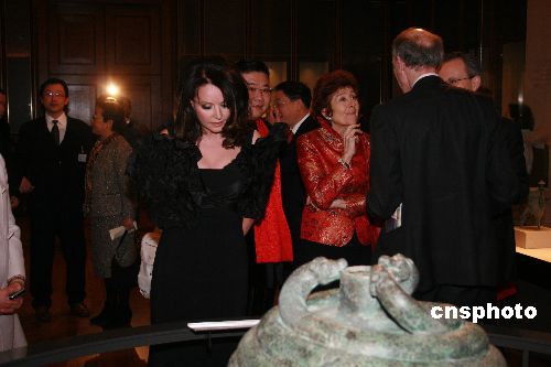圖為布萊曼在開幕式后參觀在大英博物館舉辦的“中國青銅玉器展”。中新社發 李鵬 攝