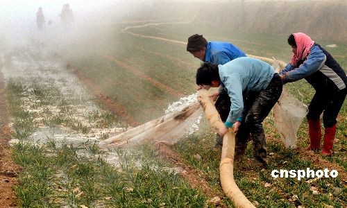 河南洛陽自2008年10月下旬以來,沒下過一場“透雨”,降水量較常年同期減少近八成,全市農作物受旱面積達260萬畝,其中有30萬畝麥苗枯黃。13座大中型水庫蓄水量不足常年的一半。7.3萬人飲水嚴重困難,1.1萬人靠送水解決飲水問題。全市先后投入抗旱資金2500余萬元,抓緊抗旱。