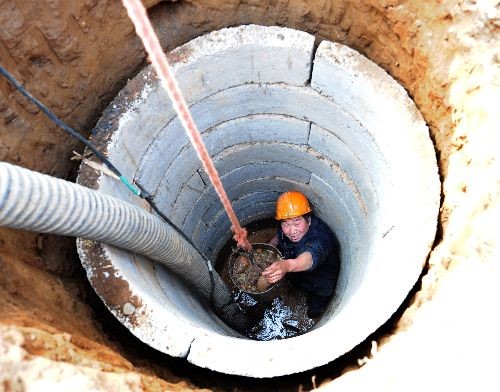 汝陽縣柏樹鄉群眾正在打井,準備抽水抗旱。中新社發 高山岳 攝