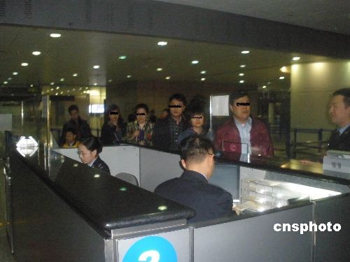 首批美國車禍幸存者5日晚飛抵上海,其中包括傷愈出院的一家三口吳守桂、包瑞華、吳雙以及一月三十日當天未參加大峽谷一日游的四名游客張欣凡、周茵、戴解華、李葉娟一行七人。中新社發 浦邊 攝