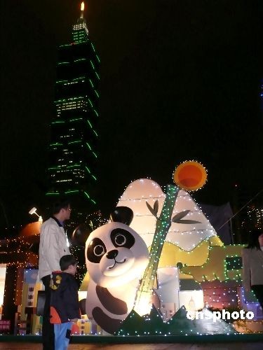 2月5日,元宵節將至,2009臺北燈節各式花燈正式登場。隨著大陸贈臺大熊貓團團圓圓正式與臺灣民眾見面,今年花燈新增的大熊貓造型花燈成為一大亮點,受到民眾的喜愛。中新社發 路梅 攝