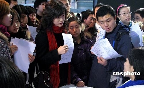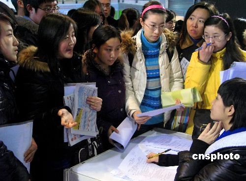 圖為大學生在一家專賣店招聘臺前應聘店長、模特、導購員等職業。中新社發 鄒憲 攝