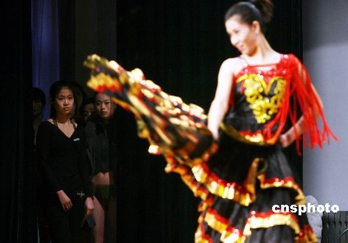 2月8日,在山東工藝美術學院服裝表演系的形體專業測試中,209名考生身穿泳裝在T臺上展示形體美,秀出才藝,同臺競爭40個入學名額。中新社發 王鋒鋒 攝