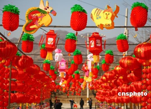 2月9日,紅廟村紅燈籠走廊。當日,北京市懷柔區紅廟村隆重舉辦“北京九渡河首屆元宵燈會”,從入村路口到進村街道直至村內的大小巷道,萬盞花燈,營造出一片燈的海洋。
