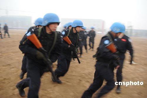 圖:中國赴海地維和警察防暴隊冒雨訓(xùn)練(3)