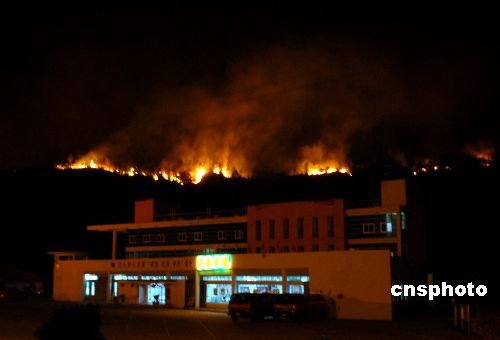 圖中為沙縣高速公路站附近的一家加油站山頭也發生火災,消防隊員正帶領周邊的群眾救火。中新社發 李劍準 攝