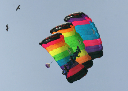 中新網2月14日電 南亞最大的航空展印度航展仍在繼續進行。13日,航展中又上演了多場空中特技表演的好戲。圖為當日舉行的精彩的空中特技跳傘表演。