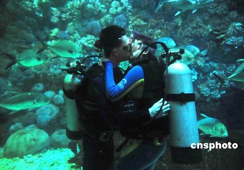 圖:青島情侶水下演繹浪漫情人節(3)