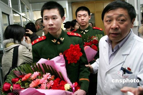 2月17日,在撲救2月9日晚央視新址北配樓大火中受傷的5名消防官兵,在北京朝陽醫院的救治下康復出院,醫院醫護人員舉行了簡短而隆重的歡送儀式,為消防官兵送上祝福。目前,因吸入有毒有害、高溫氣體造成肺部嚴重損傷的消防中隊長張少輝仍需留院觀察。