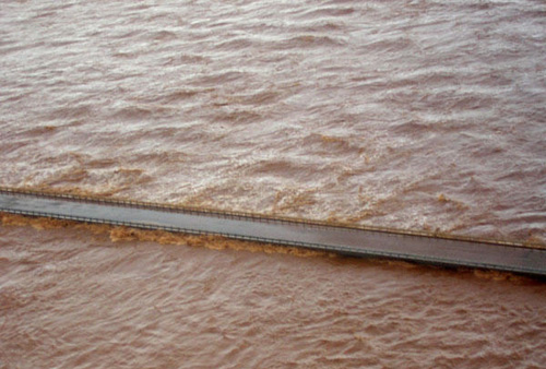 西澳大利亞州的一座大橋幾乎被洪水淹沒了。