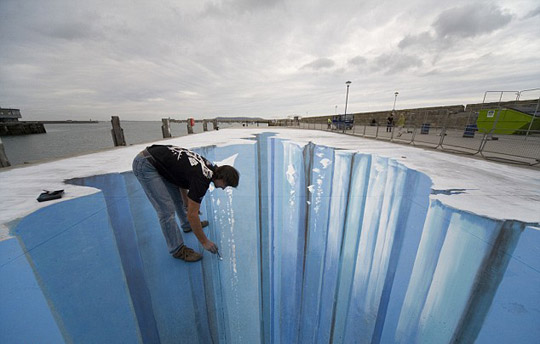 組圖:藝術家街頭大玩3D 街道頓成"深淵"(4)