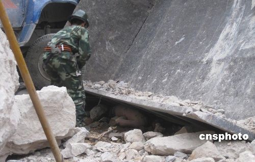 圖為消防員在一輛被砸爛的大貨車下發(fā)現最后一名被困人員的遺體。