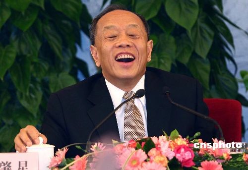 3月4日,十一屆全國人大二次會議舉行首場新聞發布會,大會發言人李肇星在回答中外記者的提問時言語詼諧,有記者問他任人大會議發言人是否具有挑戰性的問題時,他回答說“哪壺不開提哪壺”。中新社發 杜洋 攝
