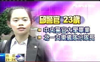 臺灣 邱警官: 臺灣地區“法務部長”王清峰的女保鏢警官,也是北一女樂儀隊分隊長,臺灣TVBS的報道說,這個綁著馬尾的清秀女警官,可是大有來頭。