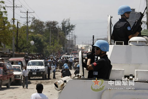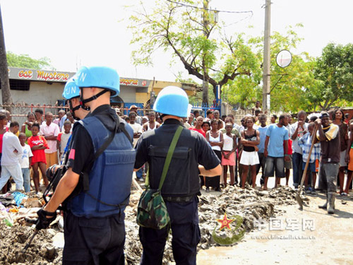 近日,300余名海地民眾在太陽城國家一號公路舉行游行示威,并設(shè)置路障,致使交通堵塞。中國第七支駐海地維和警察防暴隊根據(jù)聯(lián)海團指令,迅速趕往現(xiàn)場進行處置,成功化解了矛盾,及時恢復(fù)了交通。