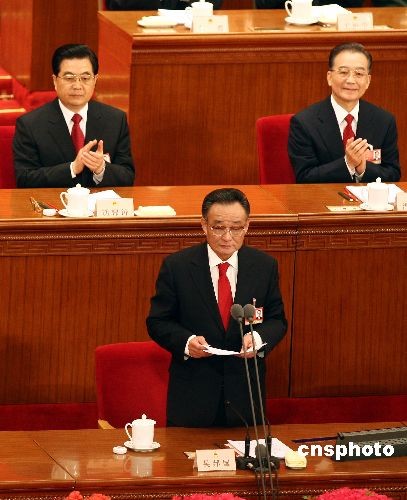 3月5日上午,十一屆全國人大二次會議在北京人民大會堂開幕。吳邦國主持會議。中新社發 杜洋 攝