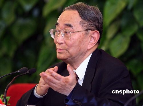 全國(guó)政協(xié)常委、著名經(jīng)濟(jì)學(xué)家厲以寧在3月6日下午舉行的全國(guó)政協(xié)十一屆二次會(huì)議記者會(huì)上說(shuō),當(dāng)前樓價(jià)居高不下,原因是地價(jià)高。他還回答了關(guān)于上調(diào)資源增值稅的說(shuō)法和提高勞動(dòng)收入在國(guó)民收入中分配比例等問題。中新社發(fā) 宋吉河 攝