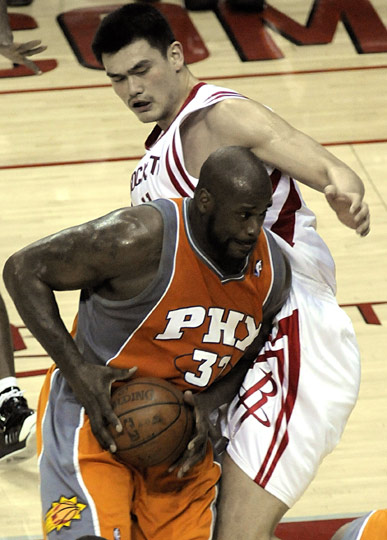 中新網3月7日電 北京時間7日上午,休斯頓火箭隊回到主場迎戰菲尼克斯太陽隊。經過一番激戰,火箭隊最終以116-112擊敗太陽隊,取得主場11連勝。姚明全場得到15分、13個籃板、6次助攻、2次搶斷和2次蓋帽,而“大鯊魚”奧尼爾只得到17分和5個籃板。