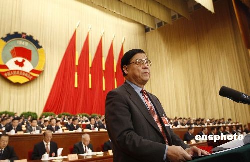 3月7日,全國政協十一屆二次會議在北京人民大會堂舉行第二次全體會議。許善達委員代表全國政協經濟委員會作題為《把增加居民消費作為最優先的目標之一》的發言。中新社發 盛佳鵬 攝