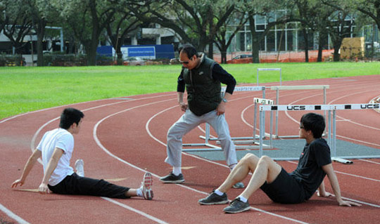 3月6日,劉翔在休斯敦萊斯大學田徑場進行了體能和跨欄技能訓練。當日,劉翔結束了在美國休斯敦的康復訓練,于3月7日啟程回國。圖為劉翔在聆聽教練孫海平的指導。