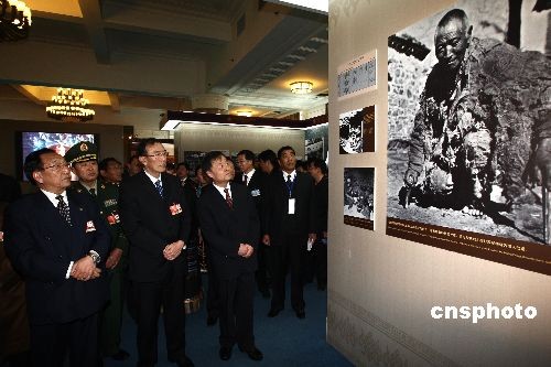 3月8日,參加全國人大的西藏團代表參觀在北京民族宮舉辦的西藏民主改革50年大型展覽。西藏自治區人大常委會主任列確(前排左)、西藏自治區主席向巴平措(前排中)等參觀展覽。中新社發 杜洋 攝