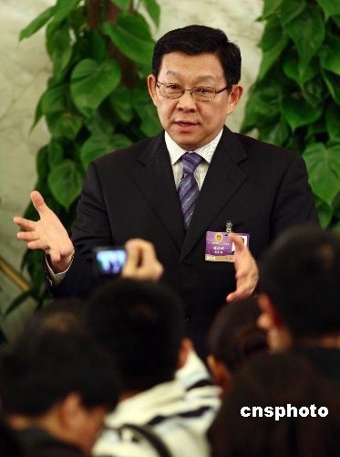 3月10日,十一屆全國人大二次會議在人民大會堂舉行記者會,工業和信息化部部長李毅中、人力資源和社會保障部部長尹蔚民、商務部部長陳德銘就擴內需、促就業、保增長問題答記者問。在回答記者提問時,陳德銘表示,貿易保護主義是為全世界所不齒,在華盛頓的G20會議上,各國元首共同發表了莊嚴聲明,要反對貿易保護主義。他說,“比如說只買本國貨,比如說對某些國家的產品沒有任何理由的實行禁止進口等等,這都是嚴重的保護主義傾向,都是不被世界各國所認可的。”中新社發 杜洋 攝