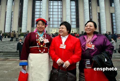 圖為歌星韓紅與藏族委員們在大會堂前留影。中新社發(fā) 傅丹丹 攝