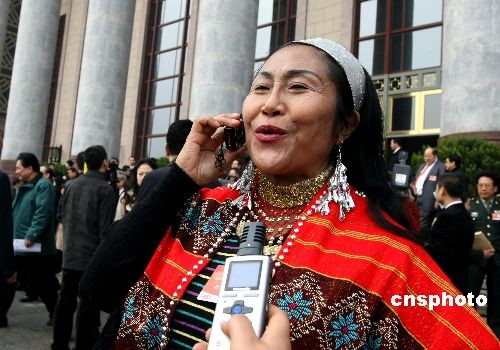 圖:政協閉幕 佤族委員和家人通電話
