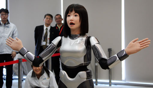 圖:日本推出會(huì)走貓步的黑發(fā)美女機(jī)器人(2)