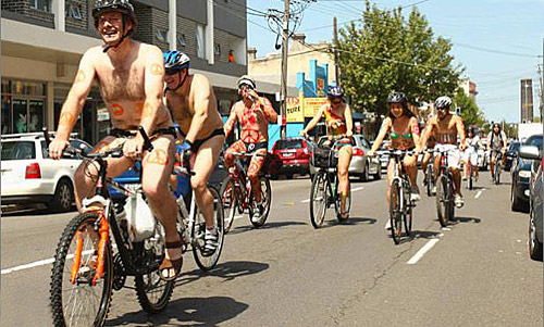 圖:彩繪、樹(shù)皮遮體蹬車(chē) 裸體自行車(chē)賽呼吁環(huán)保(7)