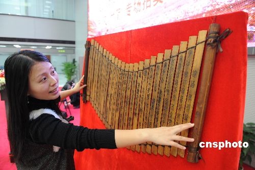 圖:最后一批“奧運(yùn)缶”及“竹簡(jiǎn)”在京拍賣(3)