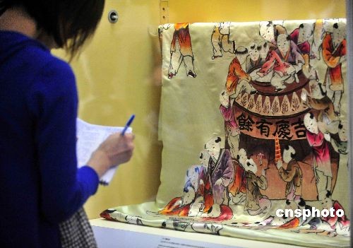 圖為百子圖被面,是孫中山和宋慶齡結婚后,宋慶齡母親送給他們的結婚禮物。