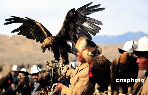 3月20日,位于新疆西部天山南脈腹地的阿合奇縣舉辦第二屆獵鷹節(jié),當(dāng)?shù)乜聽柨俗巫迕癖娋奂谠摽h賽馬場,展示自家馴養(yǎng)的上百只獵鷹。當(dāng)?shù)乜聽柨俗巫羼Z養(yǎng)獵鷹有著悠久的歷史,至今仍完整保留著原始的馴養(yǎng)方式,被譽為中國“獵鷹之鄉(xiāng)”,當(dāng)?shù)乜聽柨俗巫逡脖蛔u為“鷹王”。他們在放牧的同時,經(jīng)常騎馬到高達近百米的高山頂上,將自己馴養(yǎng)的獵鷹放飛。中新社發(fā) 劉新 攝